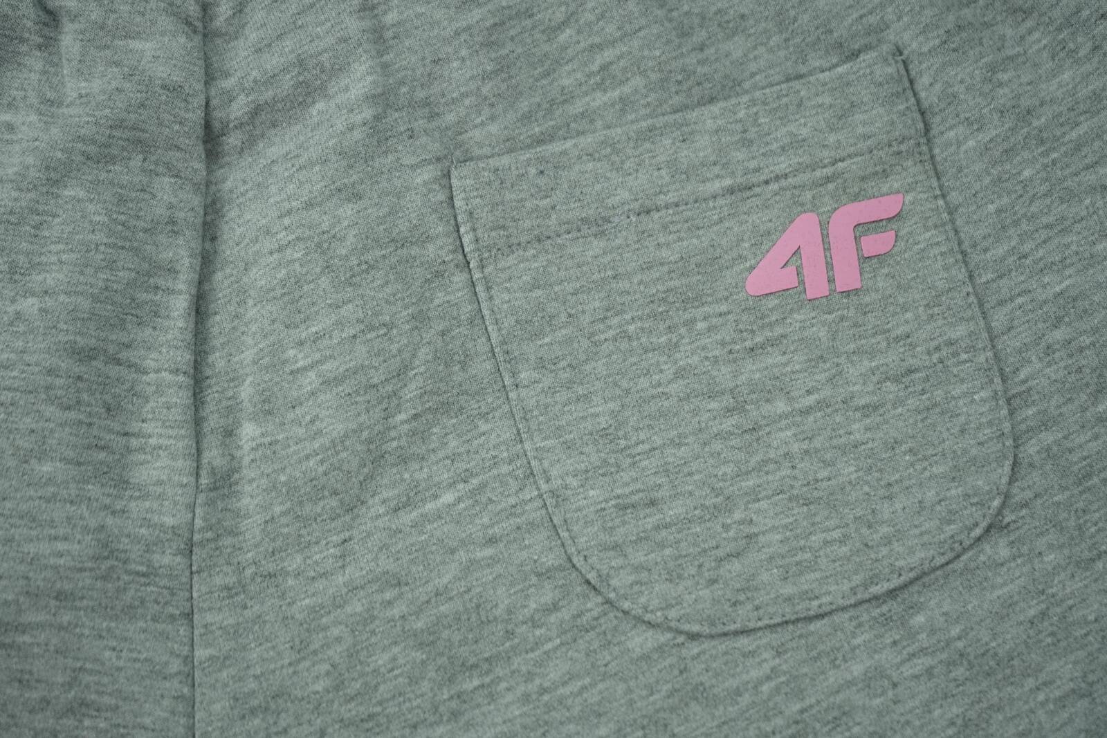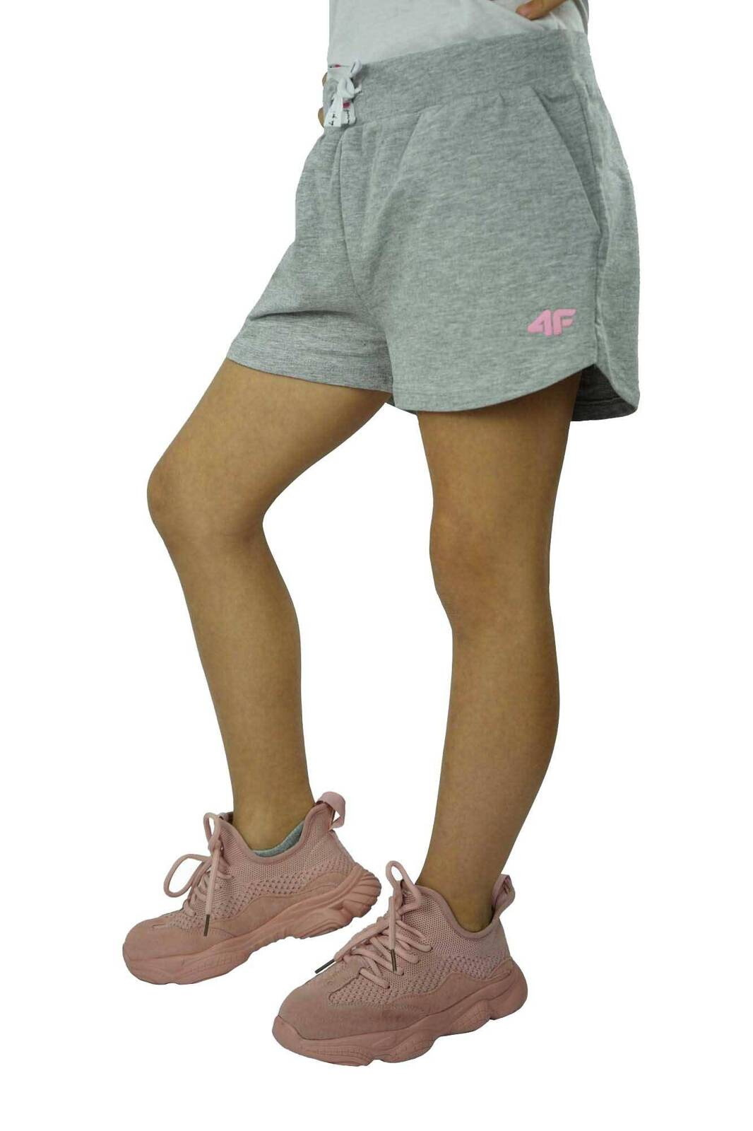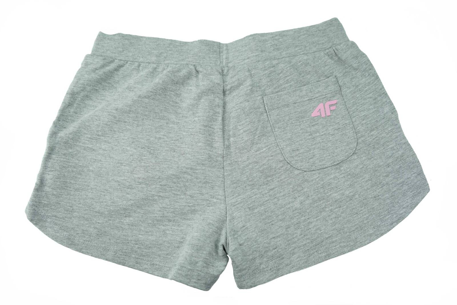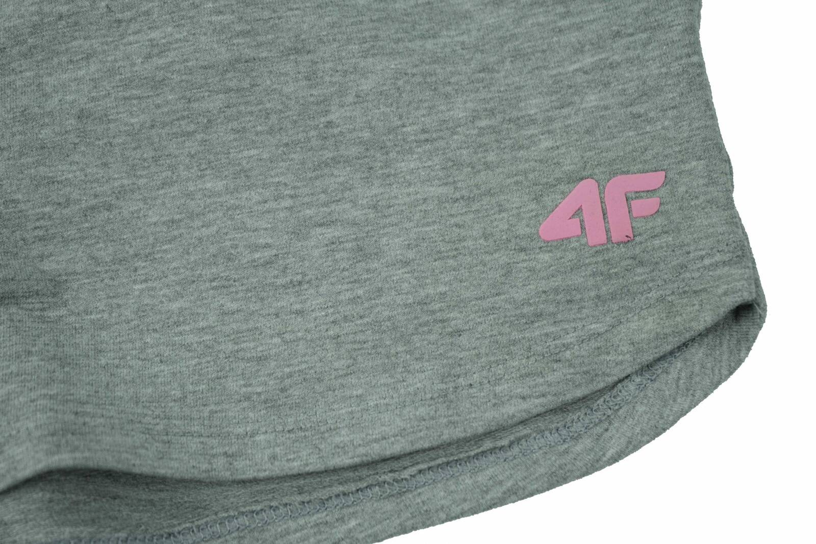 - Krótkie spodenki dziewczęce marki 4F w kolorze szarym idealne zarówno do codziennych, letnich stylizacji jak i na treningi. Klasyczny krój pozwala na pełną swobodę, a dzięki ścigaczowi w pasie każdy może je indywidualnie dopasować do sylwetki.