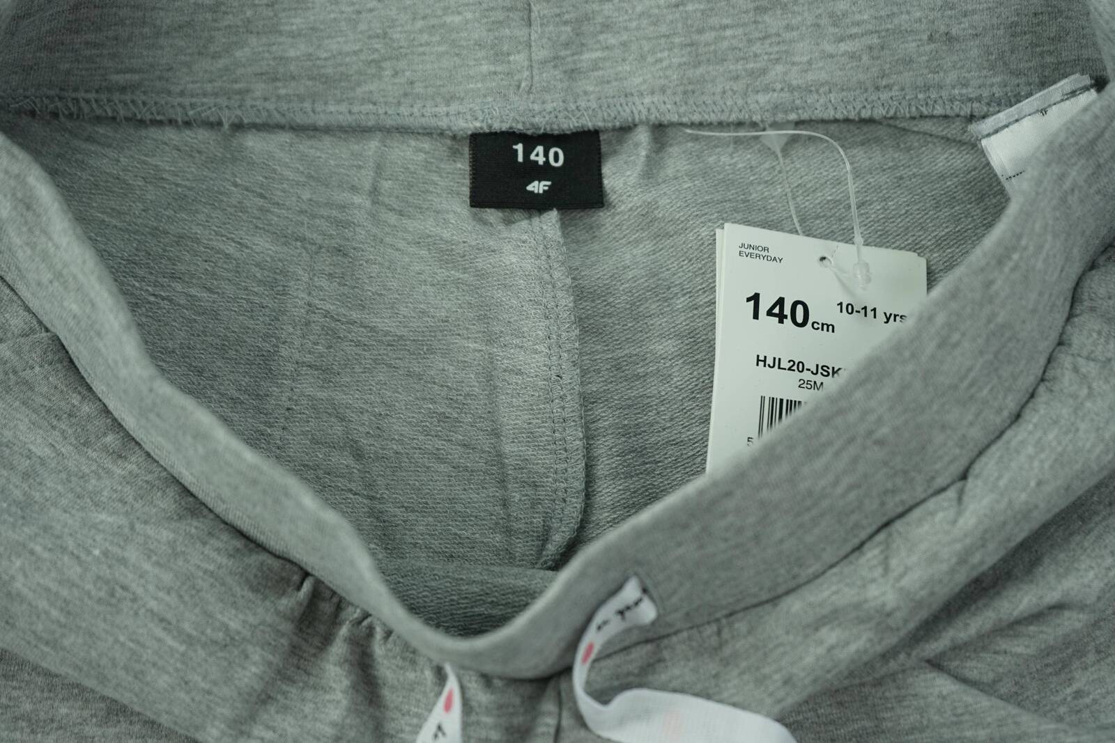 Krótkie spodenki dziewczęce polskiej marki 4F w kolorze szarym idealne zarówno do użytkowania na co dzień jak i na treningi. Uszyto je z najlepszych jakościowo materiałów - 55% bawełna, 40% poliester, 5% elastan. Klasyczny krój zapewnia pełną swobodę ruchów, a regulowany ściągacz w pasie pozwoli na idealne dopasowanie ich do sylwetki. Posiadają dwie otwarte kieszenie po bokach oraz jedną z tyłu, w których można przechować najpotrzebniejsze drobiazgi. Materiał jest miękki w dotyku oraz zapewnia naturalną wentylację ciała, co gwarantuje komfort noszenia. Na lewej nogawce umieszczono delikatne logo producenta. Produkt jest nowy, posiada oryginalne metki.