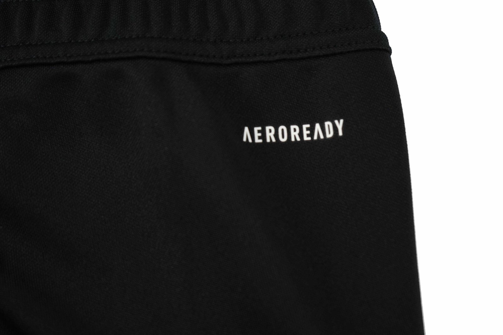 • Spodnie damskie marki Adidas w kolorze czarnym wykonane z poliestru wspartego technologią Aeroready, która odpowiada za pochłanianie wilgoci i naturalną wentylację ciała.