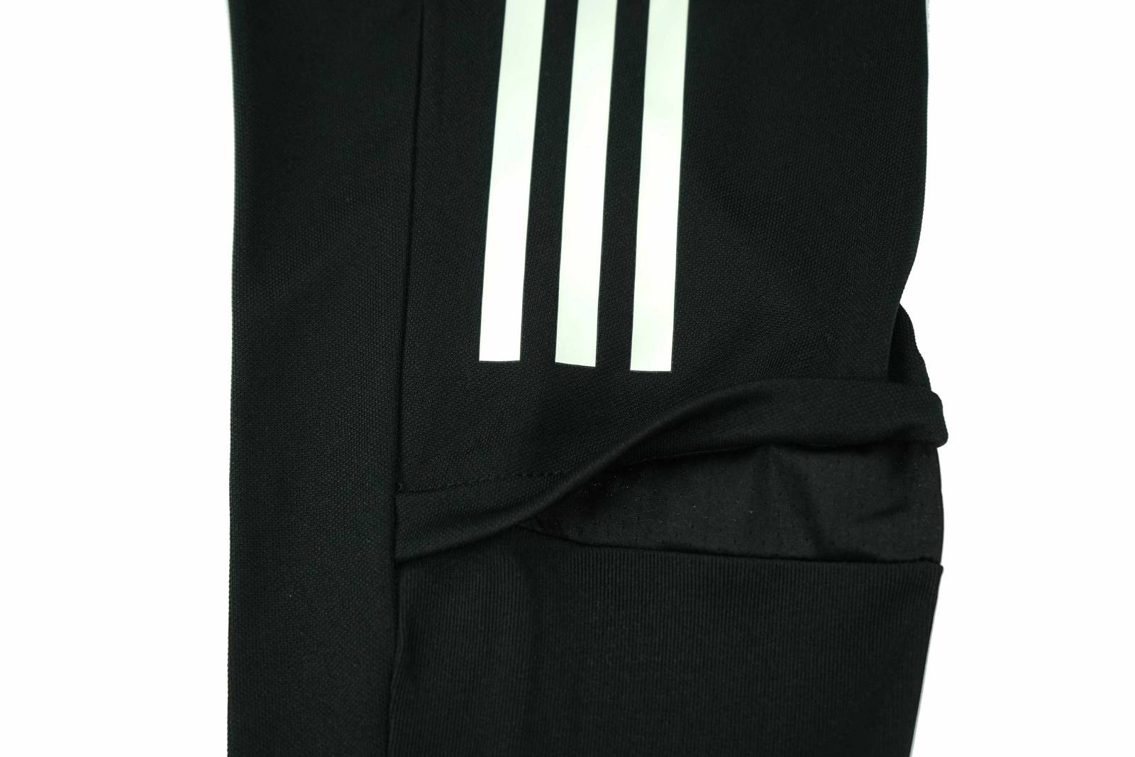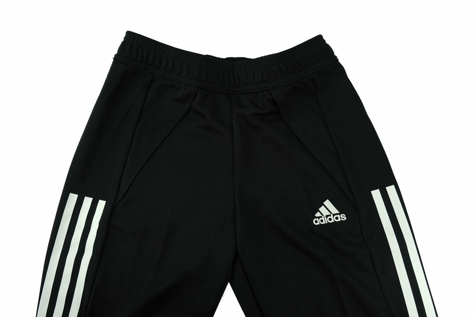 Spodnie damskie marki Adidas w kolorze czarnym z serii Condivo 20 Training Pants, wykonane w 100% z poliestru z technologią Aeroready, która odpowiada za pochłanianie wilgoci oraz zapewnia właściwości wentylacyjne. Ponadto materiał pochodzi z recyklingu, co zmniejsza emisję szkodliwych dla środowiska substancji. Spodnie dzięki swoim właściwościom świetnie sprawdzą się na trening, ale również będą idealne na co dzień. Ich zwężany w łydkach krój dobrze prezentuje się na każdej sylwetce, dodatkowo ściągacz w pasie z możliwością regulacji pozwoli na ich indywidualne dopasowanie. Po bokach posiadają dwie zasuwane kieszenie. Z przodu umieszczono logo producenta, a na udach trzy charakterystyczne dla marki paski. Produkt jest nowy, posiada oryginalne metki.