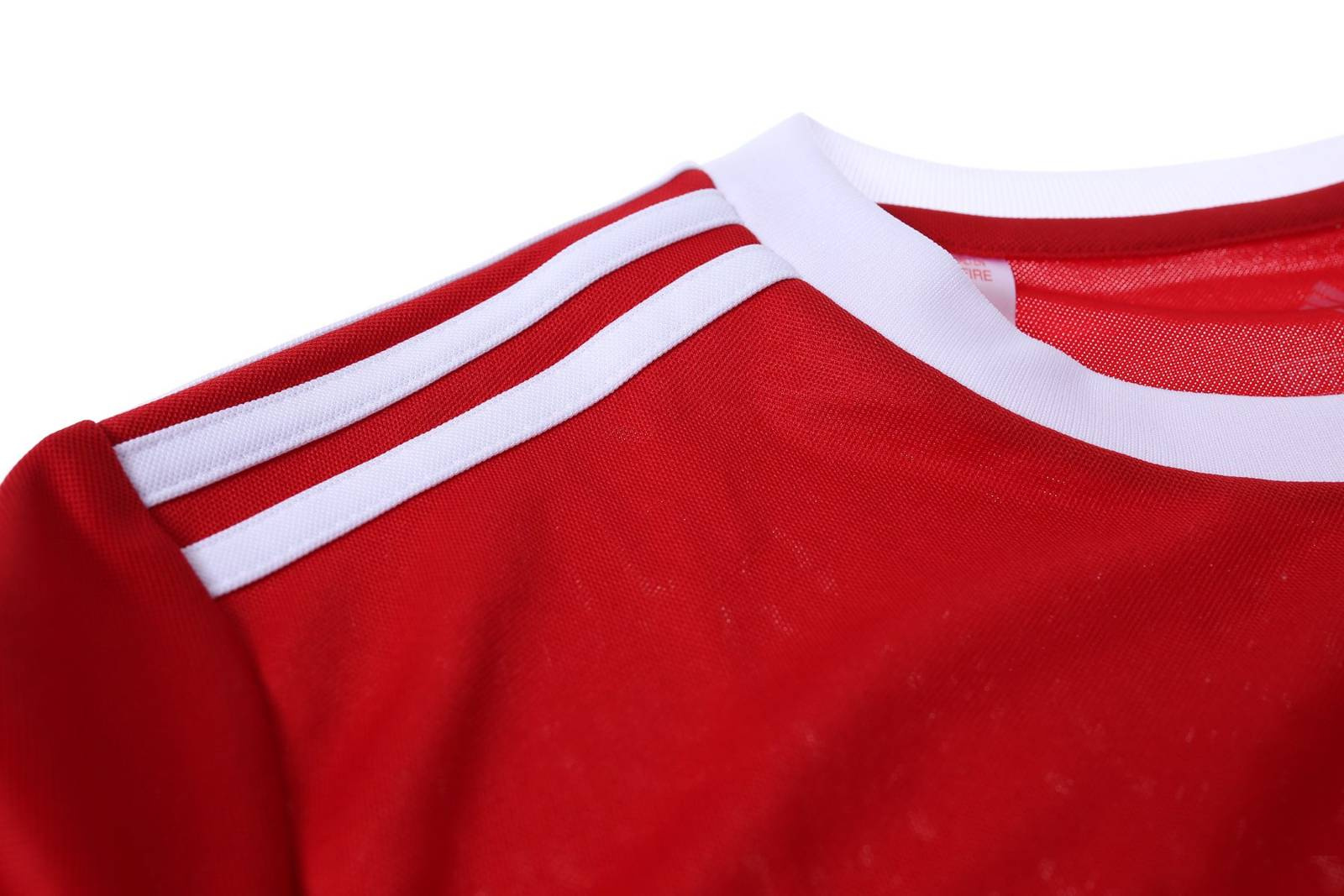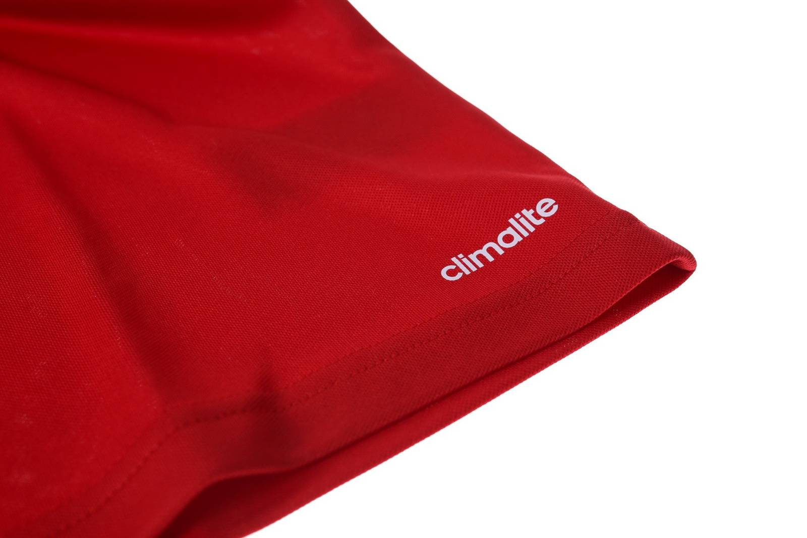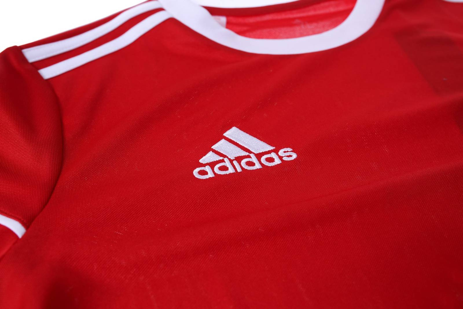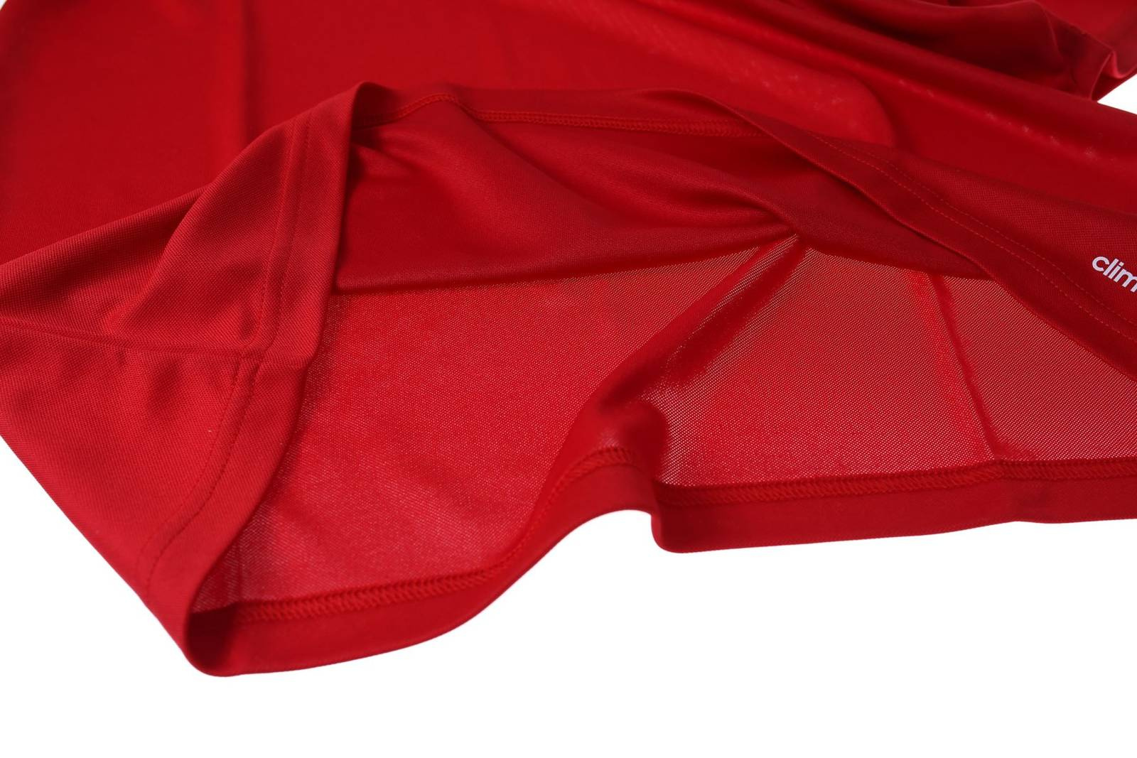 - Koszulka chłopięca marki Adidas, w kolorze czerwonym, z białymi wstawkami materiałowymi. Koszulka pochodzi z serii Squadra i została wykonana w 100% z poliestru. Jest to typowo sportowy model T-shirta Adidas.