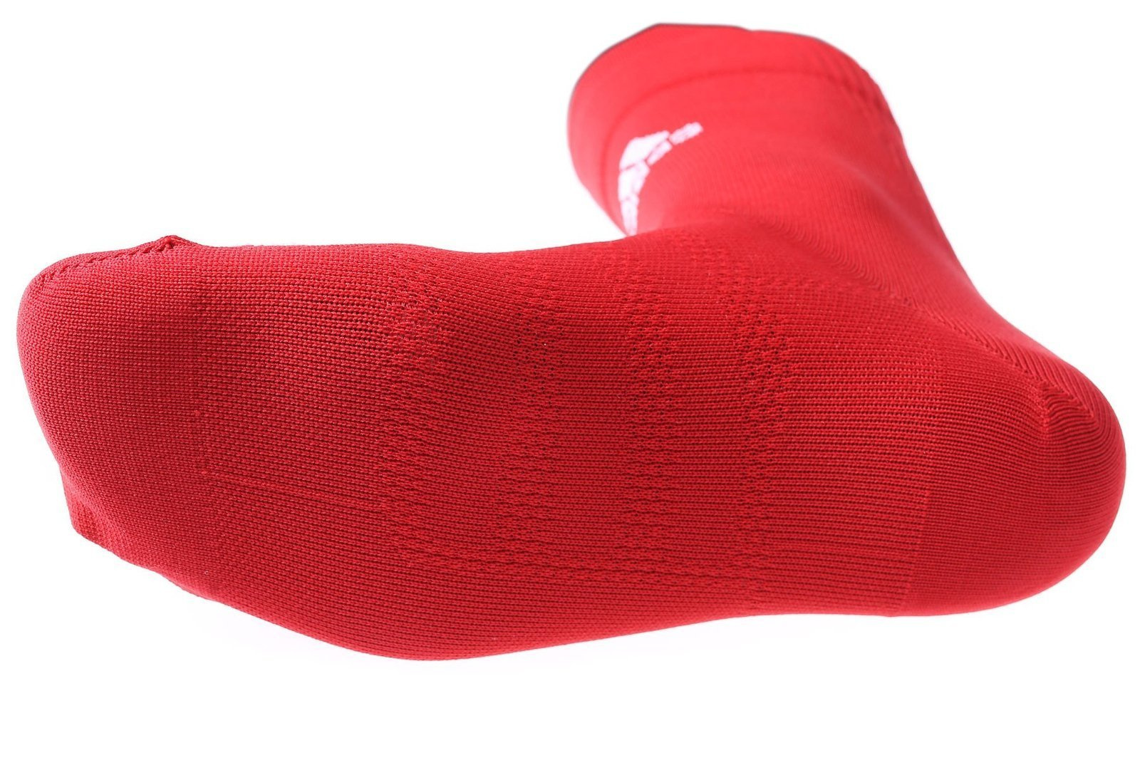- Męskie skarpety marki Adidas, w kolorze czerwonym. Skarpety pochodzą z serii Alphaskin i zostały wykonane w 55% z nylonu, 41% poliestru i 4% elastanu.