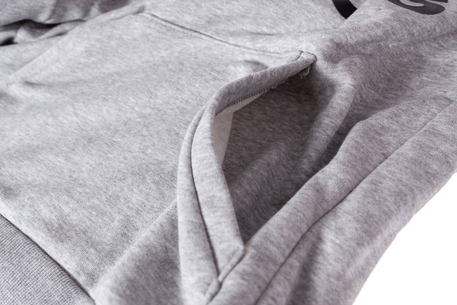 Bluza MH BOS PO FT DT9947 marki Adidas została stworzona z myślą o aktywnych fizycznie mężczyznach ceniących sobie komfort i wygodę również poza treningiem. Nadaje się nie tylko na siłownię, halę sportową czy do biegania, ale również jako element codziennej garderoby. Wykonana została z bawełny 70% i poliestru 30%  dzięki czemu zapobiega szybkiemu wychładzaniu się organizmu. Obecność kaptura wraz ze ściągaczem w postaci sznurka jest dodatkowym udogodnieniem, bo chroni przed deszczem i zimnem. Bluza Adidas posiada również kieszeń typu kangur umożliwiającą przechowywanie różnych drobiazgów. Na modelu w kolorze popieli logo w kolorze czarnym zostało umiejscowione na środku klatki piersiowej, Rękawy i dolna część zakończone są gumką. Produkt jest nowy i posiada oryginalne metki.