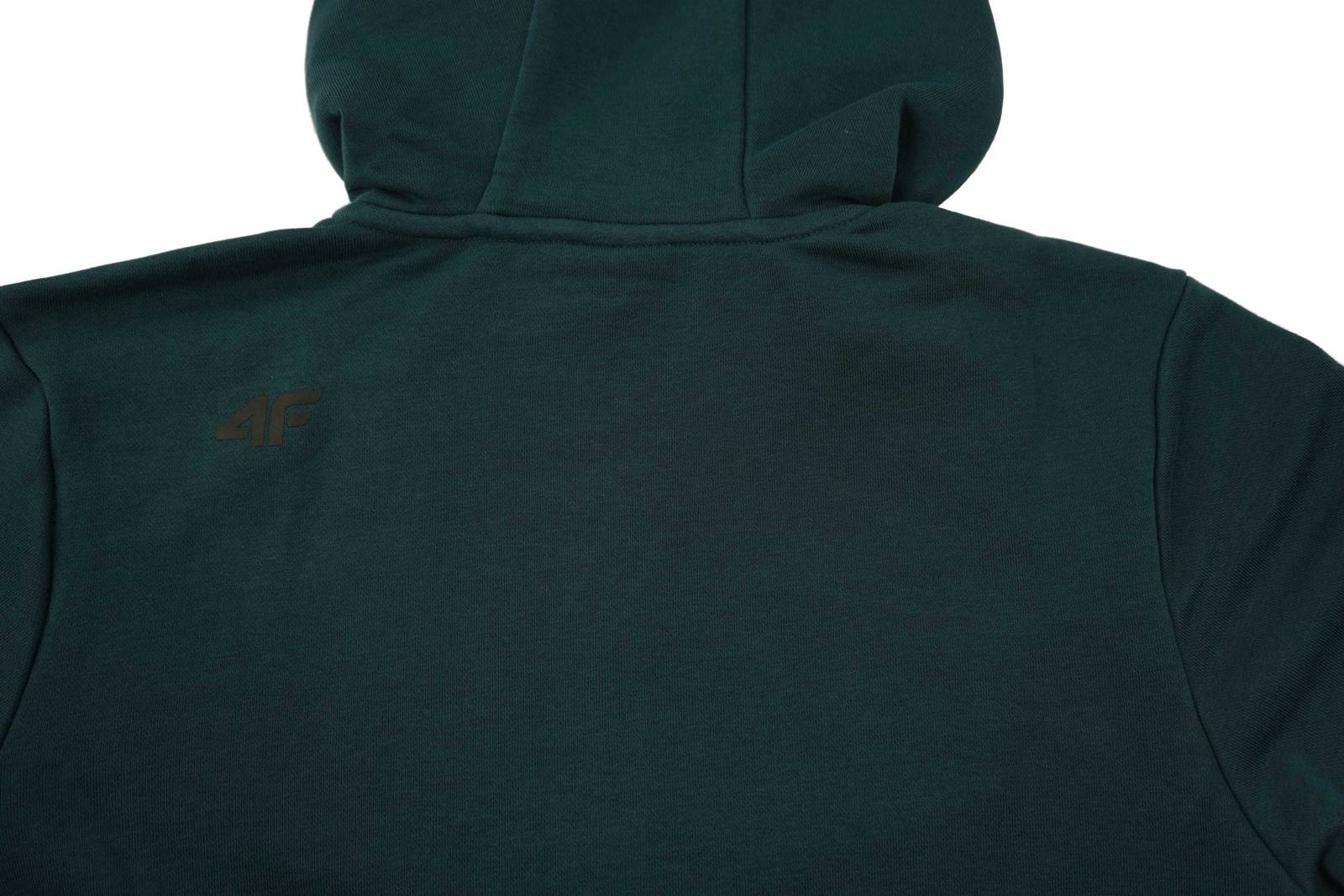 - Zielona bluza z kapturem marki 4F wykonana w 73% z bawełny, 23% z poliestru i 4% z wiskozy. Klasyczny krój sprawi, że świetnie nada się zarówno podczas treningów jak i do chodzenia na co dzień.