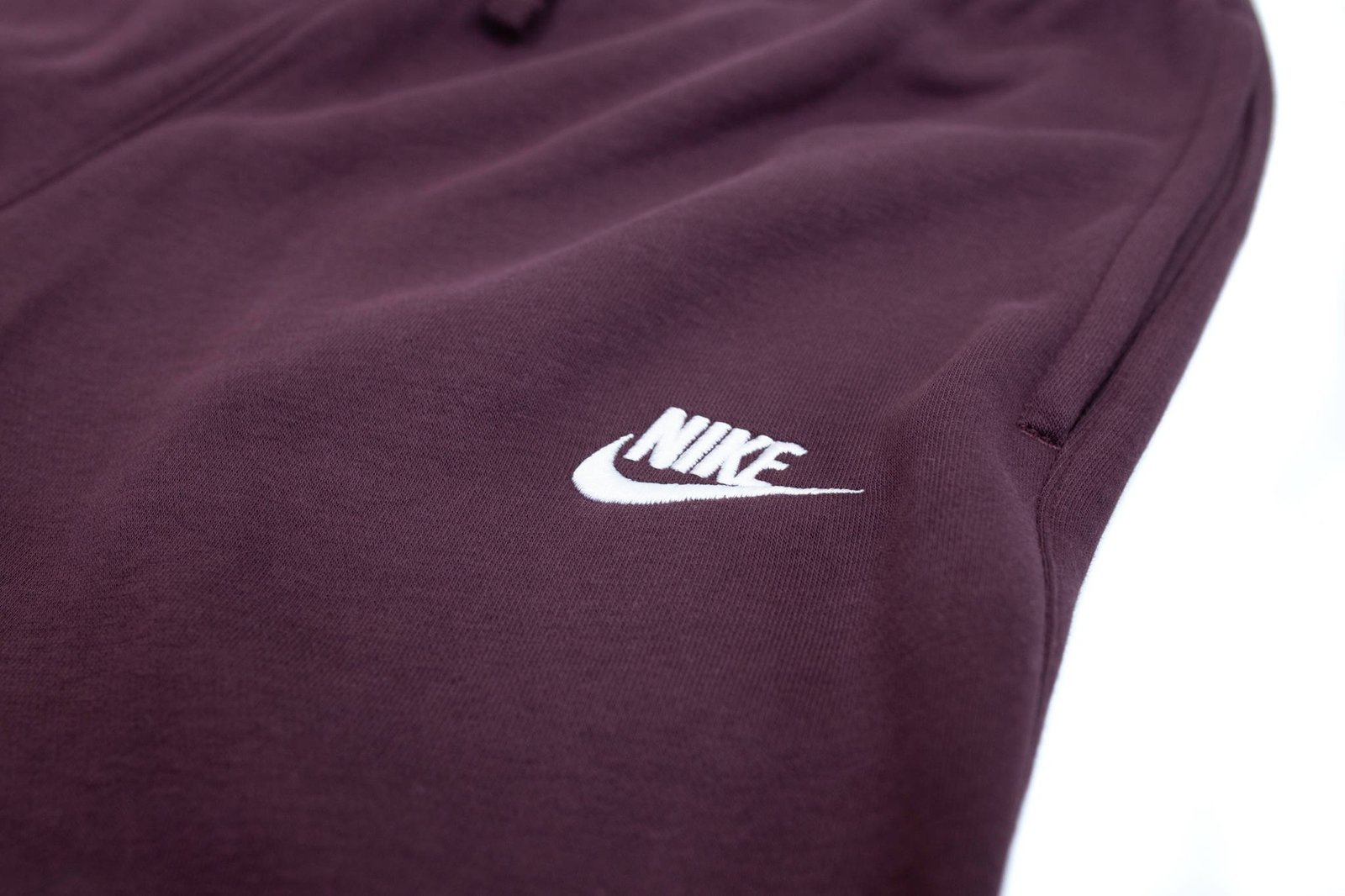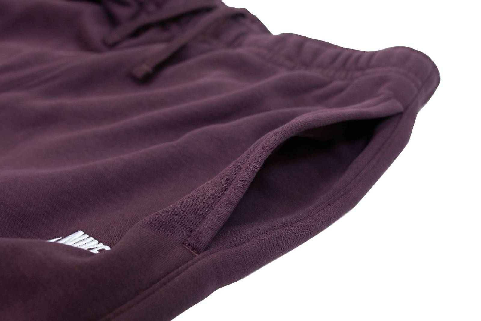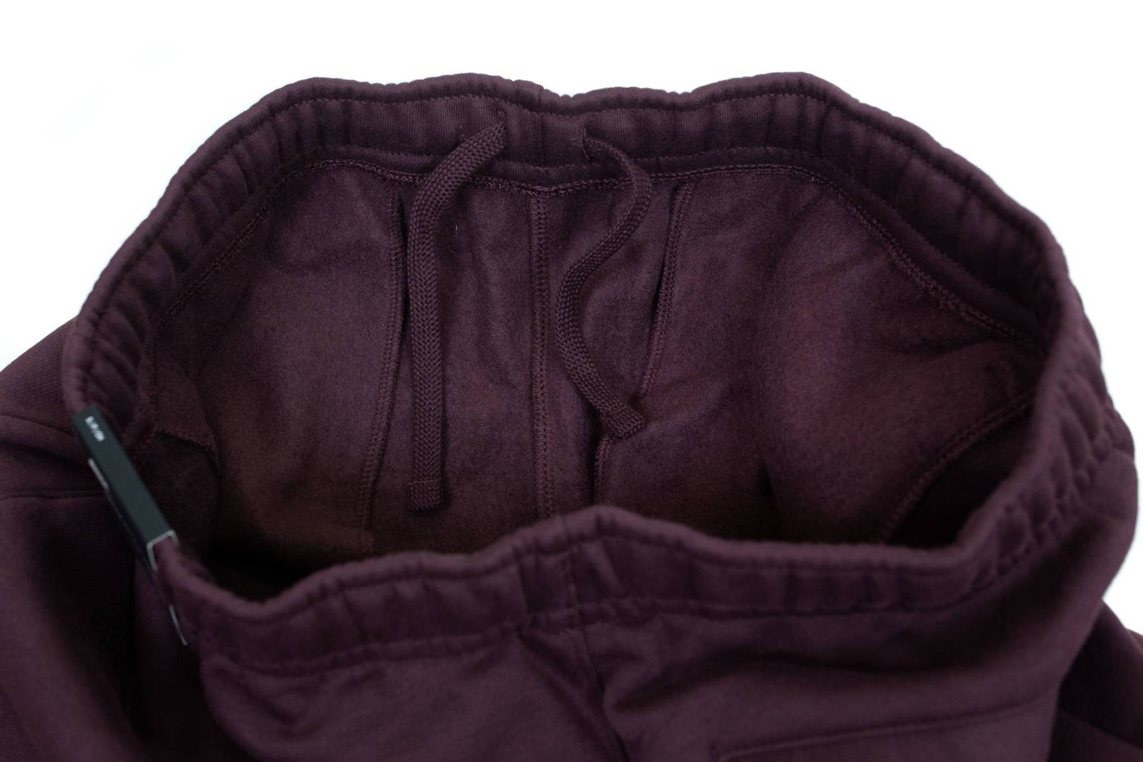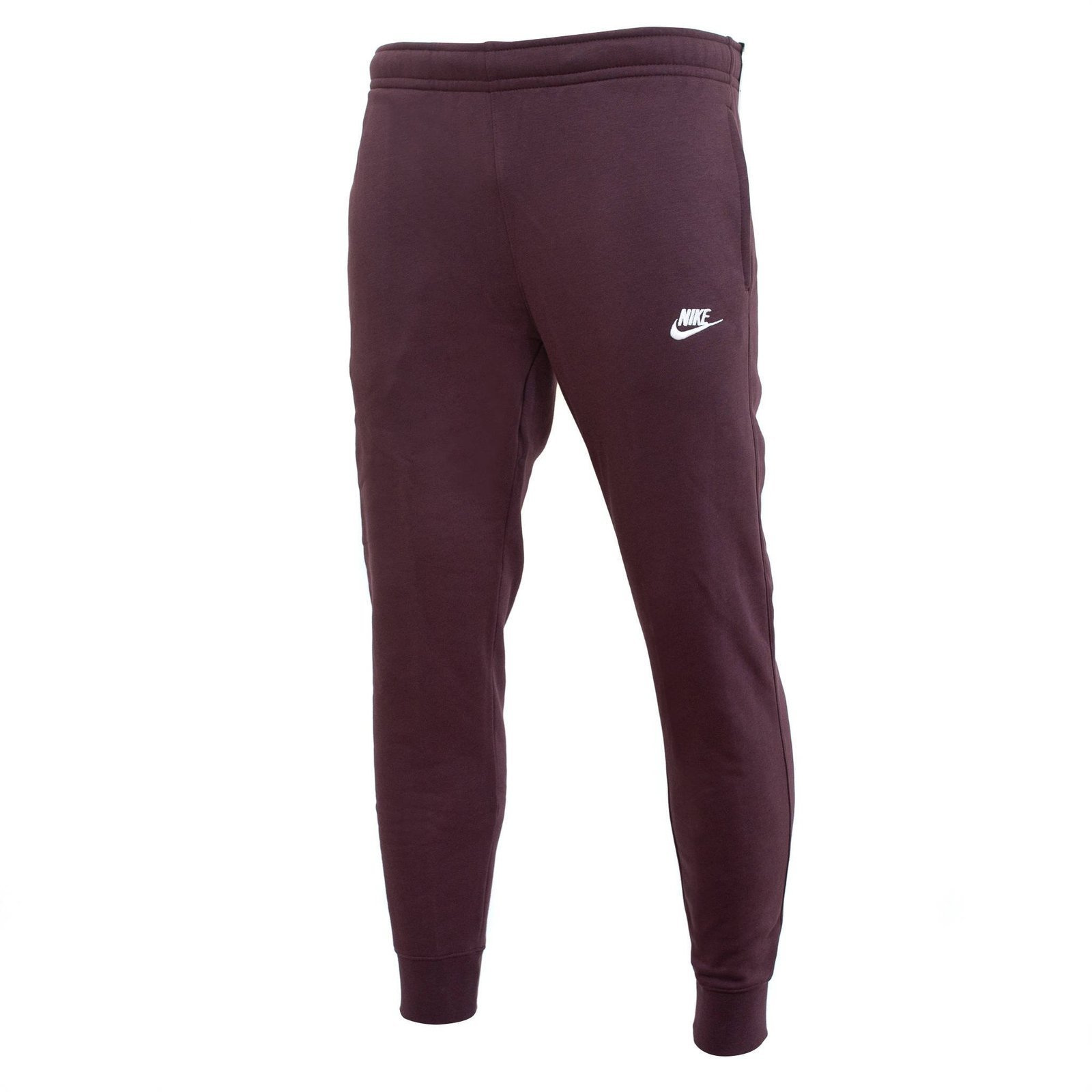 - Męskie spodnie marki Nike w kolorze bordowym wykonane z wysokogatunkowej, miękkiej bawełny oraz trwałych włókien poliestrowych. Model posiada elastyczną talię, zwężane nogawki i dwie otwarte kieszenie po bokach.