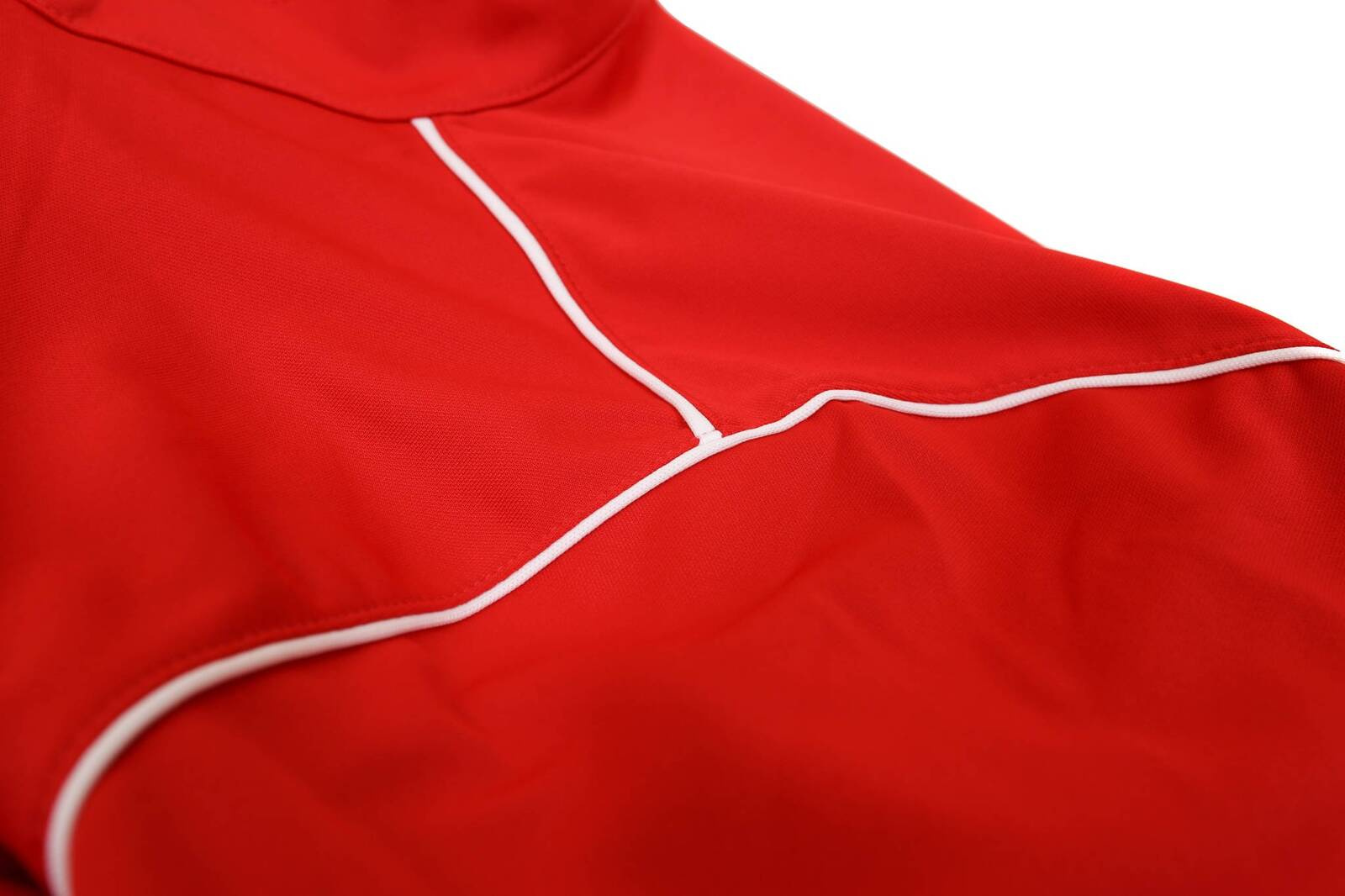 Męska bluza marki Nike z serii Dry Park 20 w kolorze czerwonym. Wykonana została z najlepszego jakościowo poliestru (100%), co zapewnia komfort użytkowania w każdych warunkach, ponadto materiał ten wzbogacono w technologię Dri-FIT, która odpowiada za utrzymanie suchości, odprowadzając wilgoć na zewnątrz. Sportowy fason z długim suwakiem przeprowadzonym przez całą długość bluzy pozwala kontrolować utrzymanie ciepła. Posiada wysoki kołnierz z siateczką ochraniający szyję przed chłodem, stójka zakończona jest patką ochronną, co zapobiega podrażnieniu skóry. Dopasowany krój pozwala na pełną swobodę ruchów podczas intensywnych treningów. Klasyczny, jednokolorowy design został przełamany białymi paskami w okolicach ramion, z przodu umieszczono logo producenta. Bluza posiada dwie otwarte kieszenie po bokach na najpotrzebniejsze drobiazgi lub ogrzanie dłoni w chłodniejsze dni. Jest to idealna część garderoby zarówno na co dzień jak i do sportowych stylizacji. Produkt jest nowy, posiada oryginalne metki.