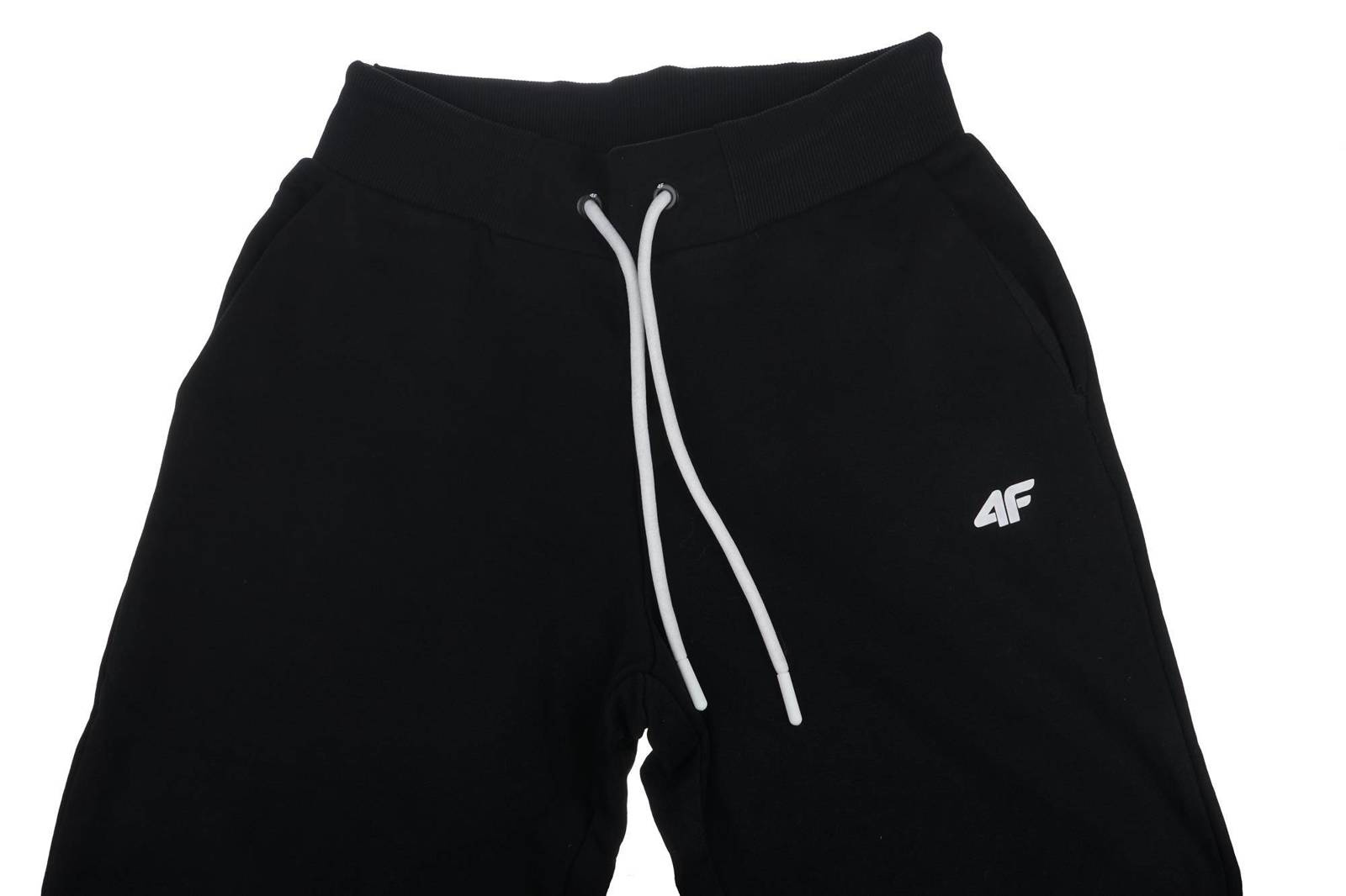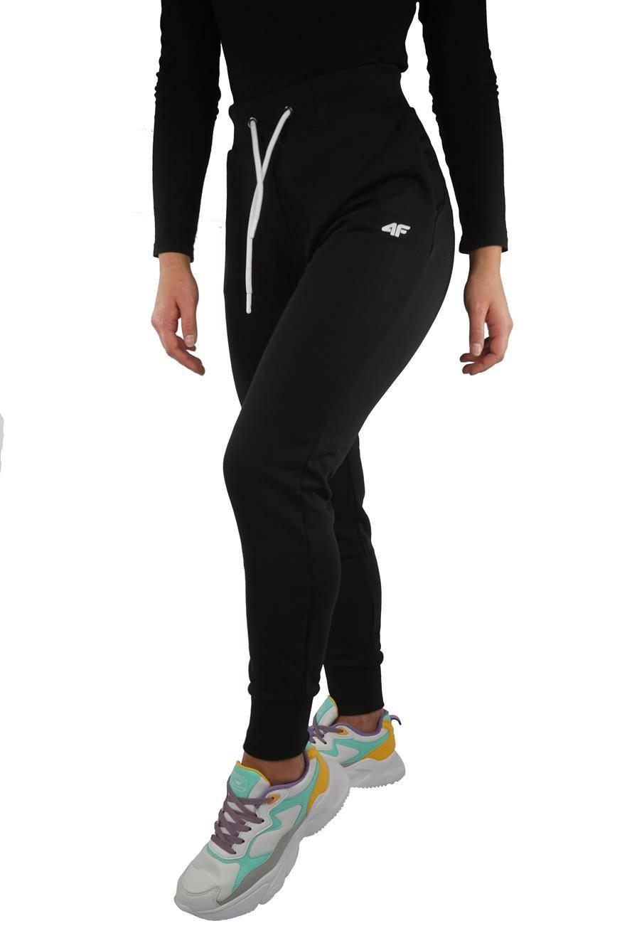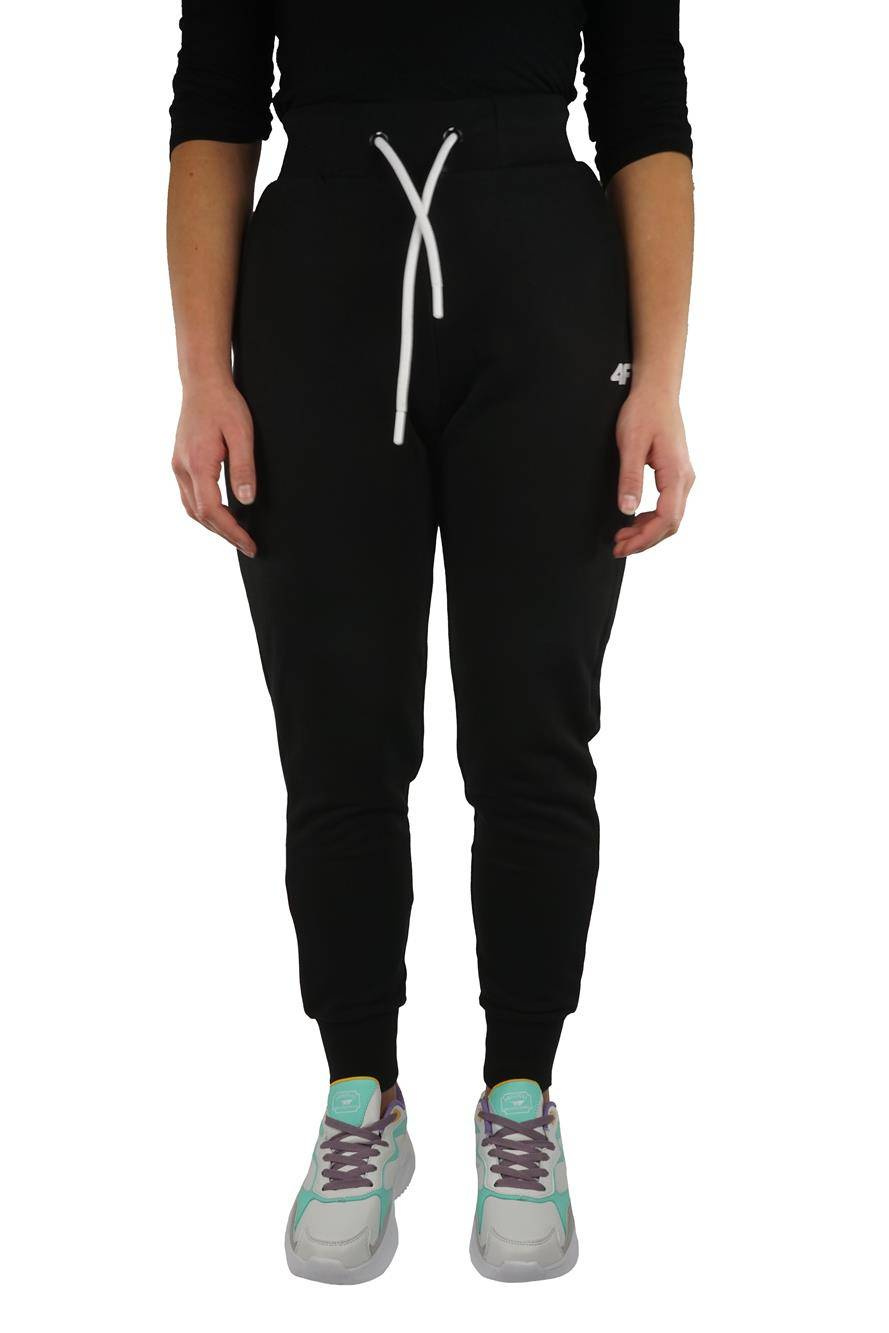 - Damskie spodnie dresowe marki 4F w kolorze czarnym o lekko dopasowanym kroju. Wykonane w 80% z wysokogatunkowej bawełny oraz 20% z włókien poliestrowych. Posiadają regulację w talii, dzięki czemu można dopasować je do każdej sylwetki.